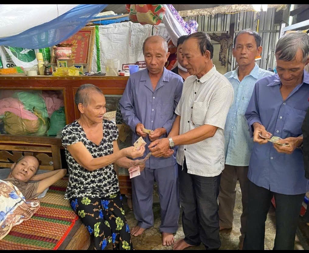 Đại diện Chi Bộ Ấp Cây Gõ và thành viên Tổ Phước thiện đến trao tiền hỗ trợ gia đình có người bệnh hiểm nghèo.