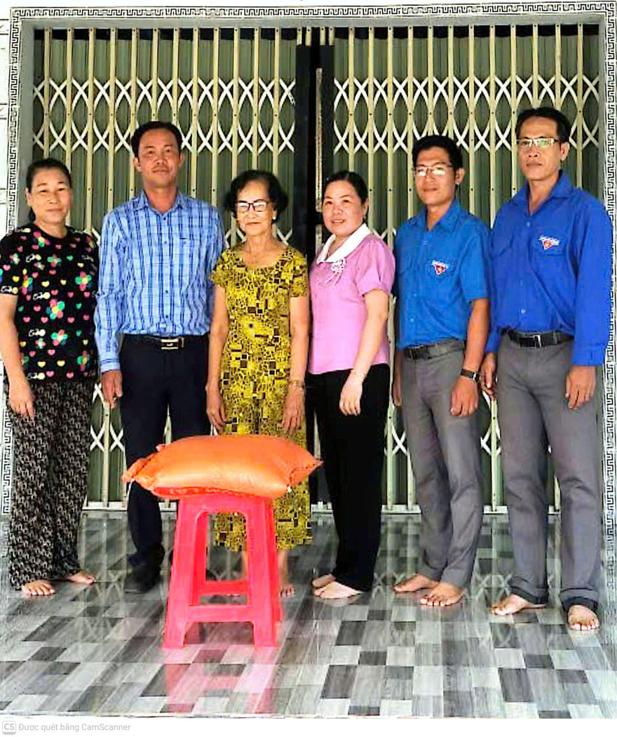 Gia đình các em học sinh có hoàn cảnh khó khăn nhận gạo hỗ trợ hàng tháng từ Mô hình Hủ gạo tình thương