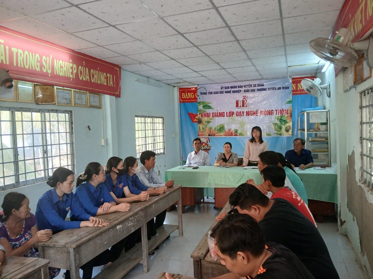 Lớp có hơn 20 học viên tham gia. Đến dự buổi lễ khai giảng có đ/c Hà Thị Lệ Thơ, phó Phòng LĐTB&XH huyện, Đ/c Phạm Ngọc Thanh Giám đốc Trung tâm GDNN-GDTX huyện, đ/c Nguyễn Thị Mỹ Nga phó Chủ tịch UBND xã, các thầy cô giáo, đại diện thường trực Xã Đoàn và ban lãnh đạo ấp và các học viên tham gia.