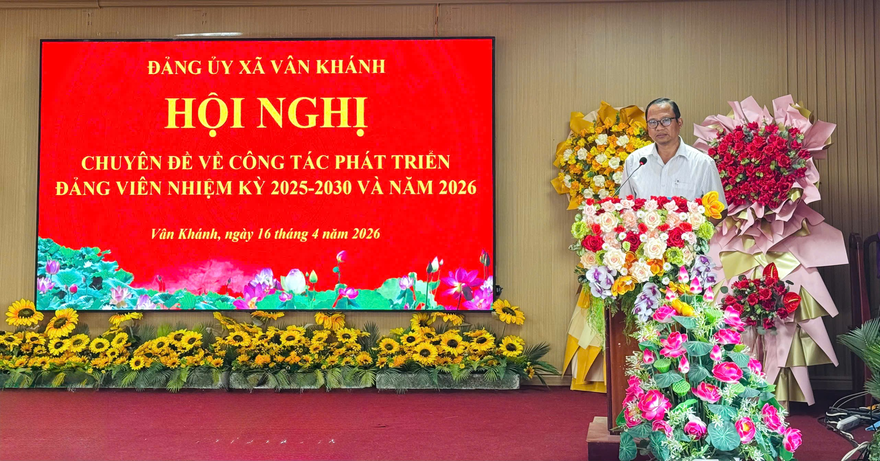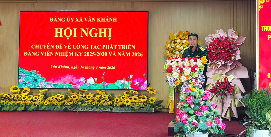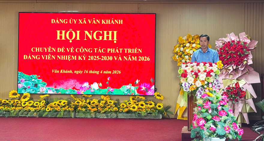Chiều ngày 16/4/2026, Đảng uỷ xã Vân Khánh đã tổ chức Hội nghị chuyên đề về công tác phát triển đảng viên nhiệm kỳ 2025–2030 và năm 2026. Hội nghị nhằm đánh giá thực trạng công tác tạo nguồn, bồi dưỡng, kết nạp đảng viên trong thời gian qua; đồng thời đề ra phương hướng, giải pháp cụ thể nhằm nâng cao chất lượng, số lượng phát triển đảng viên trong giai đoạn mới.