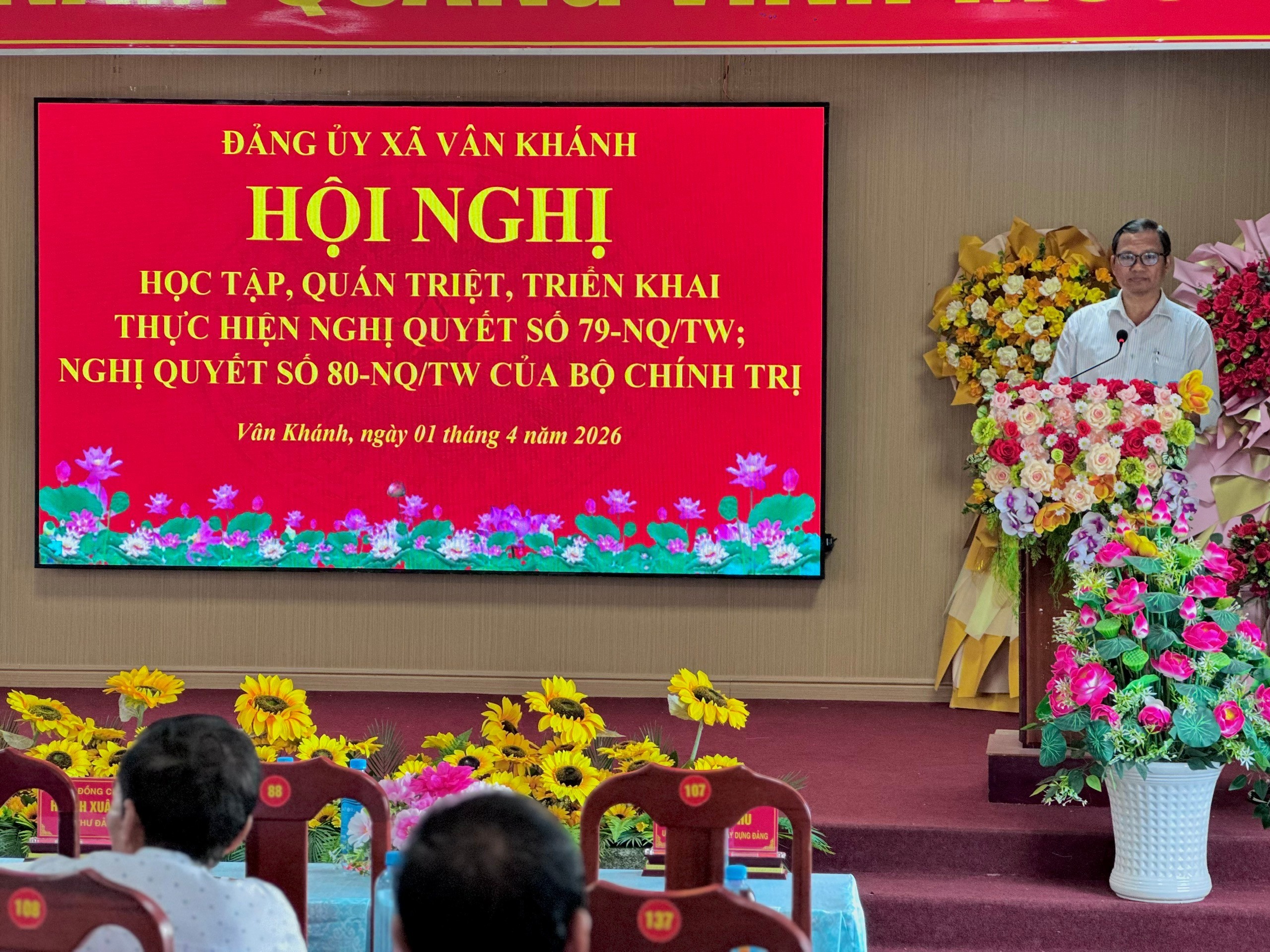 Ngày 01/04/2026, Đảng uỷ xã Vân Khánh tổ chức Hội nghị tập huấn học tập, quán triệt và triển khai Nghị quyết số 79-NQ/TW và Nghị quyết số 80-NQ/TW của Bộ Chính trị cho đảng viên là đội ngũ cán bộ, đảng viên, viên chức của các chi bộ ấp, Công an, Quân sự, Y tế và các chi bộ Trường học trên địa bàn xã. Hội nghị nhằm nâng cao nhận thức, tạo sự thống nhất về tư tưởng và hành động trong toàn Đảng bộ, góp phần đưa các nghị quyết sớm đi vào cuộc sống.
