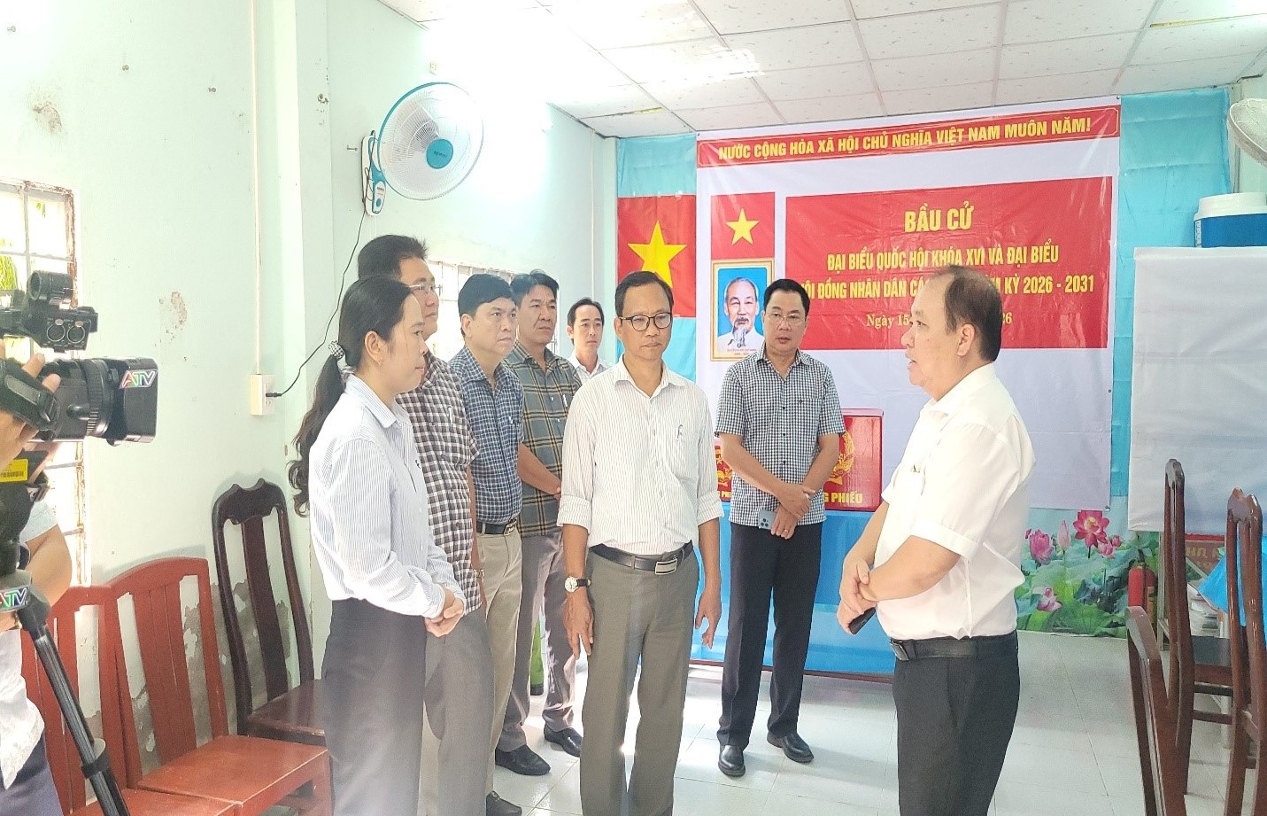 Theo đó, đoàn đã tiến hành kiểm tra tại Khu vực bỏ phiếu số 05 đơn vị bầu cử số 02 tại Trụ sở ấp Mương Đào C; Khu vực bỏ phiếu số 14 đơn vị bầu cử số 06 tại Trụ sở ấp Kim Qui A và Khu vực bỏ phiếu số 10 đơn vị bầu cử số 04 tại Trụ sở ấp Kim Qui B. Tại các nơi đến, đoàn công tác đã kiểm tra việc thành lập các tổ bầu cử tại các khu vực bỏ phiếu; công tác tuyên truyền; lập và niêm yết danh sách cử tri; niêm yết danh sách các ứng cử viên; việc chuẩn bị cơ sở vật chất, trang thiết bị tại các khu vực bỏ phiếu và xây dựng phương án đảm bảo an ninh trật tự, an toàn cho ngày bầu cử, kiểm tra công tác trang trí, khánh tiết tại các khu vực bỏ phiếu để tạo thuận lợi cho cử tri…