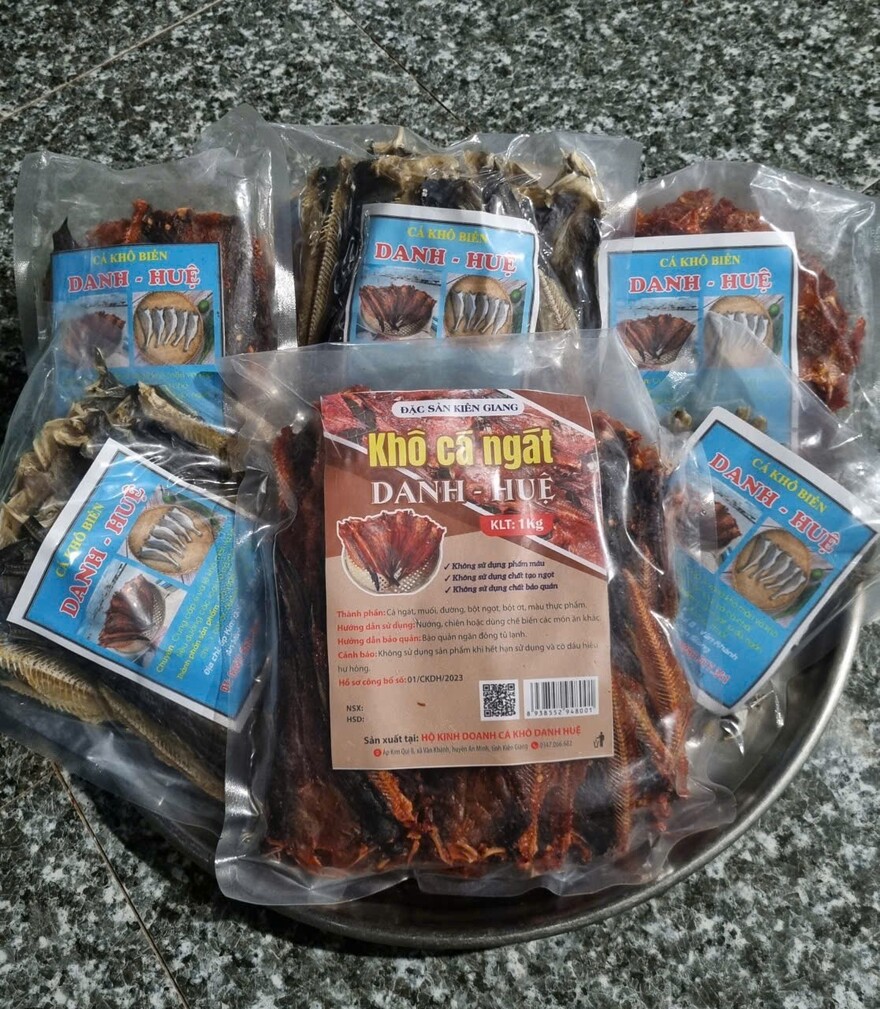 Ảnh: Sản phẩm khô cá ngát của chị Võ Thị Bé Huệ đạt tiêu chuẩn OCOP 3 sao của tỉnh