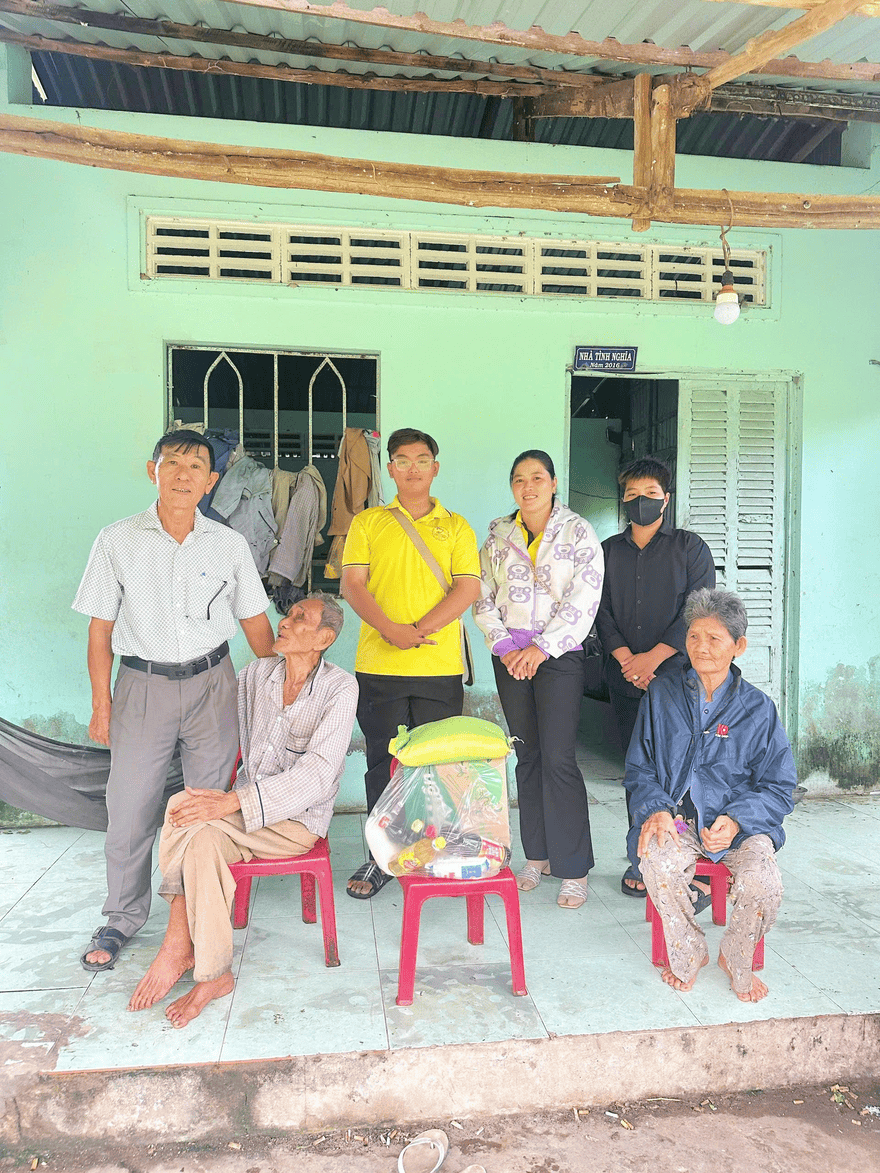 Đ/c Lê Văn Búa, Chủ tịch Hội Người cao tuổi xã Vân Khánh, tỉnh An Giang (bìa trái) cùng với nhóm từ thiện Thứ 9 Rưởi, tặng quà định kỳ hàng tháng cho hộ Trần Văn Đáng, Ấp Mương Đào B, xã Vân Khánh, tỉnh An Giang