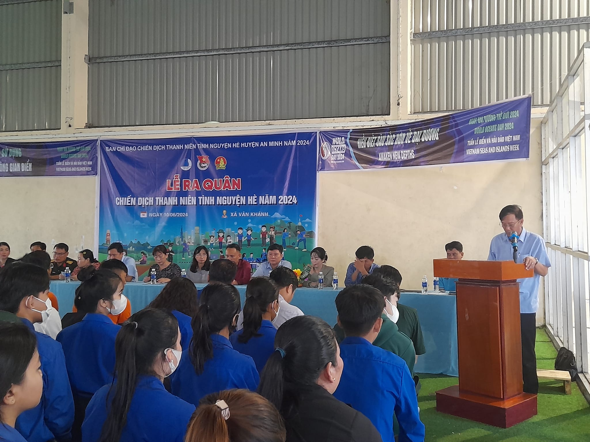 Sáng 10-6, tại UBND xã Vân Khánh, huyện An Minh Ban Chỉ đạo chiến dịch thanh niên tình nguyện hè huyện An Minh tổ chức lễ ra quân chiến dịch thanh niên tình nguyện hè năm 2024.
