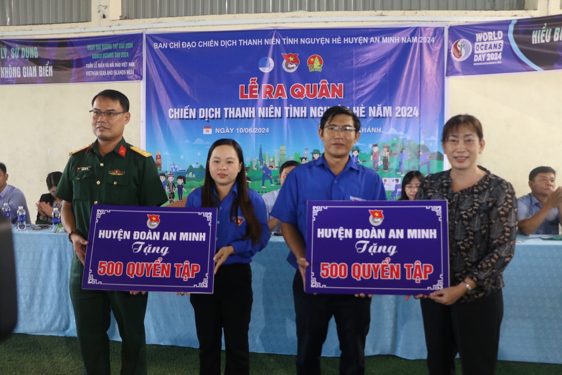 Tại buổi lễ ra quân, Ban Chỉ đạo chiến dịch thanh niên tình nguyện hè huyện An Minh trao tặng bảng tượng trưng các công trình, phần việc cho các xã đoàn, thị đoàn, cụ thể: 10 suất quà cho gia đình chính sách trên địa bàn xã Vân Khánh;bảng tuyên truyền nông thôn mới nâng cao trị giá 7,5 triệu đồng; bảng tượng trưng công trình 1 căn nhà tình bạn trị giá 25 triệu đồng cho Xã đoàn Vân Khánh.