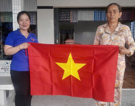 Hình ảnh Chi hội Phụ nữ ấp Mương Đào C tặng cờ Tổ quốc cho Hội viên