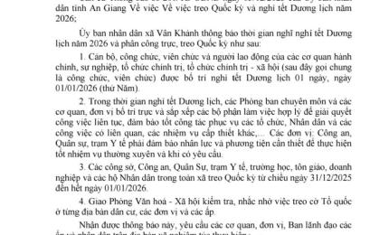 Thông báo: Treo Quốc kỳ và nghỉ tết Dương lịch năm 2026