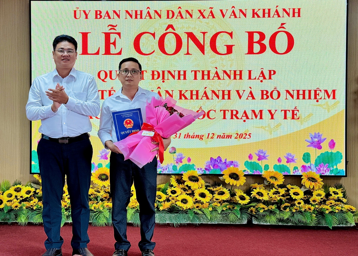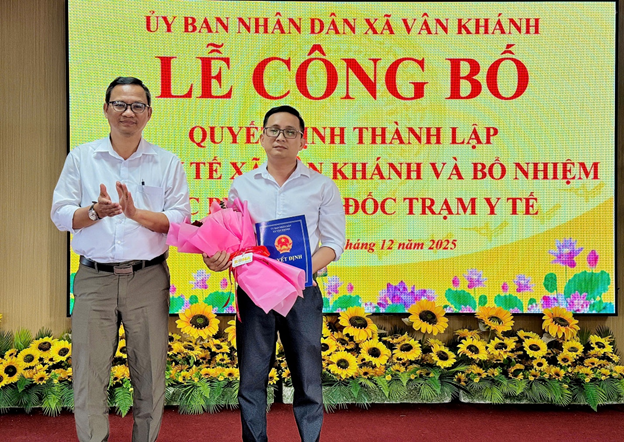 Thực hiện chủ trương sắp xếp, kiện toàn tổ chức bộ máy các đơn vị sự nghiệp công lập theo chỉ đạo của Trung ương và của tỉnh An Giang. Ngày 31/12/2025, Ủy ban nhân dân xã Vân Khánh đã tổ chức Lễ công bố Quyết định thành lập Trạm Y tế xã. Dự buổi Lễ có đồng chí Huỳnh Xuân Luật - Bí thư Đảng ủy; đồng chí Phạm Thị Cẩm Hà – Phó Bí thư Thường trực, Chủ tịch HĐND xã; đồng chí Nguyễn Văn Bằng – Phó Bí thư, Chủ tịch UBND xã cùng các đồng chí trong Ban Thường vụ, Ban Chấp hành Đảng bộ xã;lãnh đạo các cơ quan, đơn vị và tập thể viên chức Trạm Y tế xã.