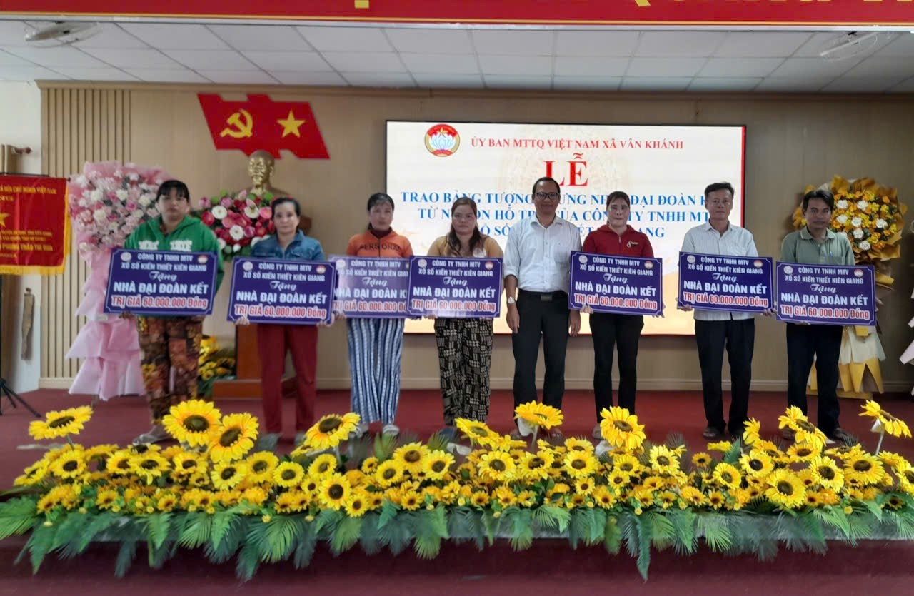 Tham dự buổi lễ có đồng chí Huỳnh Xuân Luật, Bí thư Đảng ủy xã, đồng chí Phạm Thị Cẩm Hà, Phó Bí thư thường trực đảng ủy – Chủ tịch Hội đồng nhân dân xã Vân Khánh và đại diện lãnh đạo Đảng ủy, HĐND, UBND, Ủy ban MTTQ Việt Nam xã, các ban ngành, đoàn thể cùng đông đảo bà con nhân dân tham dự. Tại chương trình, Ủy ban MTTQ Việt Nam xã đã trao bảng tượng trưng hỗ trợ kinh phí xây dựng nhà Đại đoàn kết cho 10 hộ gia đình thuộc diện hộ nghèo, với tổng kinh phí hỗ trợ 660.000.000 đồng, do Công ty TNHH MTV Xổ số kiến thiết Kiên Giang và gia đình bà Trần Hoa Mai – TP. Hồ Chí Minh vận động tài trợ.