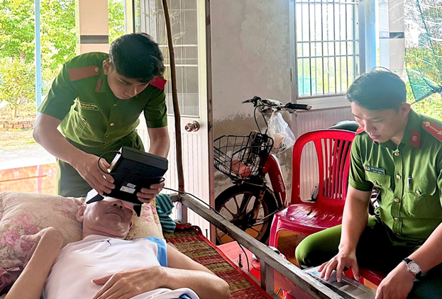 Lực lượng công an xã Vân Khánh hỗ trợ các đối tượng yếu thế trong số hóa thông tin cá nhân phục vụ cho việc cấp căn cước công dân