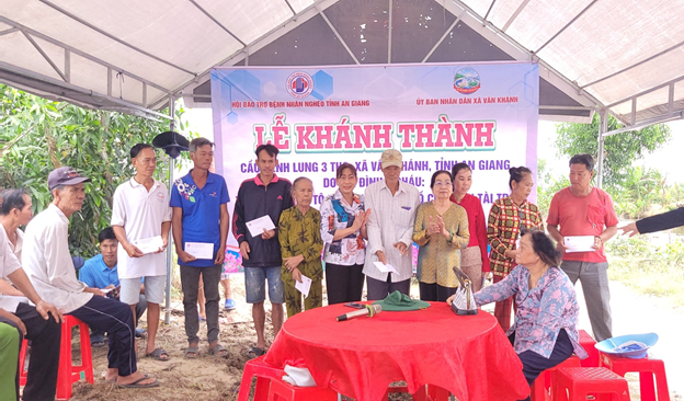 Bên cạnh hoạt động khánh thành cầu, Hội bảo trợ bệnh nhân nghèo tỉnh An Giang cùng đại diện nhà tài trợ đã trao tặng 20 phần quà cho gia đình có hoàn cảnh khó khăn trên địa bàn ấp Mương Đào C, xã Vân Khánh. Những phần quà mang ý nghĩa thiết thực đã góp phần động viên, khích lệ tinh thần của các gia đình trước thềm năm mới 2026 đang đến gần.