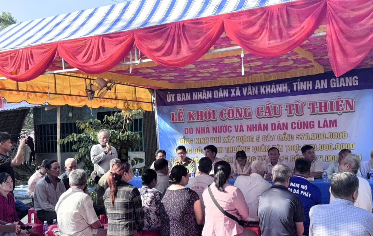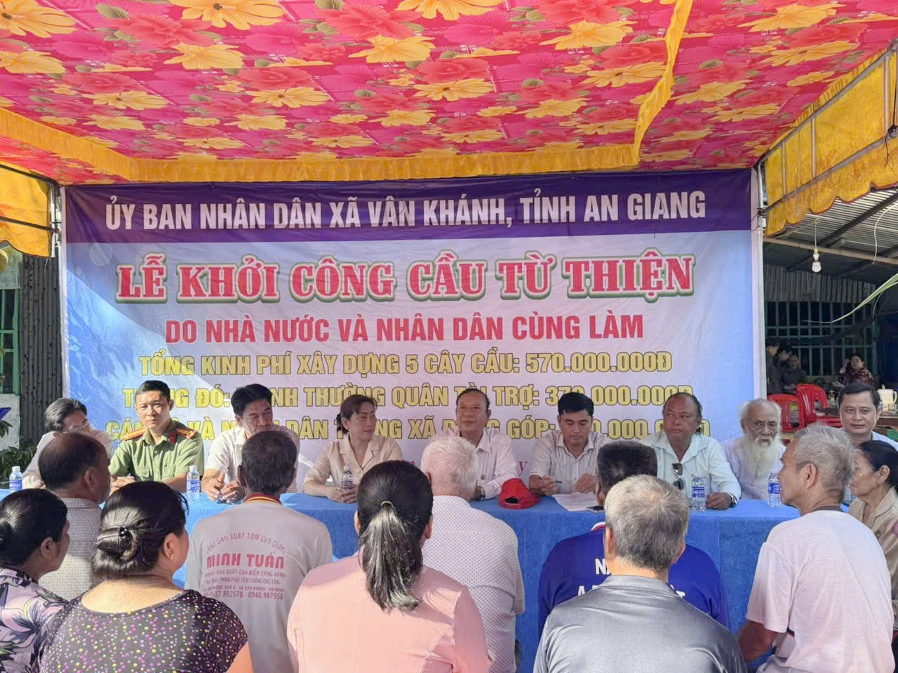 Trước yêu cầu thực tiễn đó, xã Vân Khánh đã tích cực vận động các nguồn lực xã hội hóa để đầu tư xây dựng 05 cây cầu bê tông kiên cố. Công trình được triển khai theo phương châm “Nhà nước và Nhân dân cùng làm”, với tổng kinh phí 570 triệu đồng. Trong đó, nguồn vận động từ các mạnh thường quân, nhà tài trợ và Đội thi công cầu bê tông nông thôn Phật giáo Hòa Hảo hỗ trợ 370 triệu đồng; phần còn lại 200 triệu đồng do địa phương đóng góp bằng kinh phí và ngày công lao động.